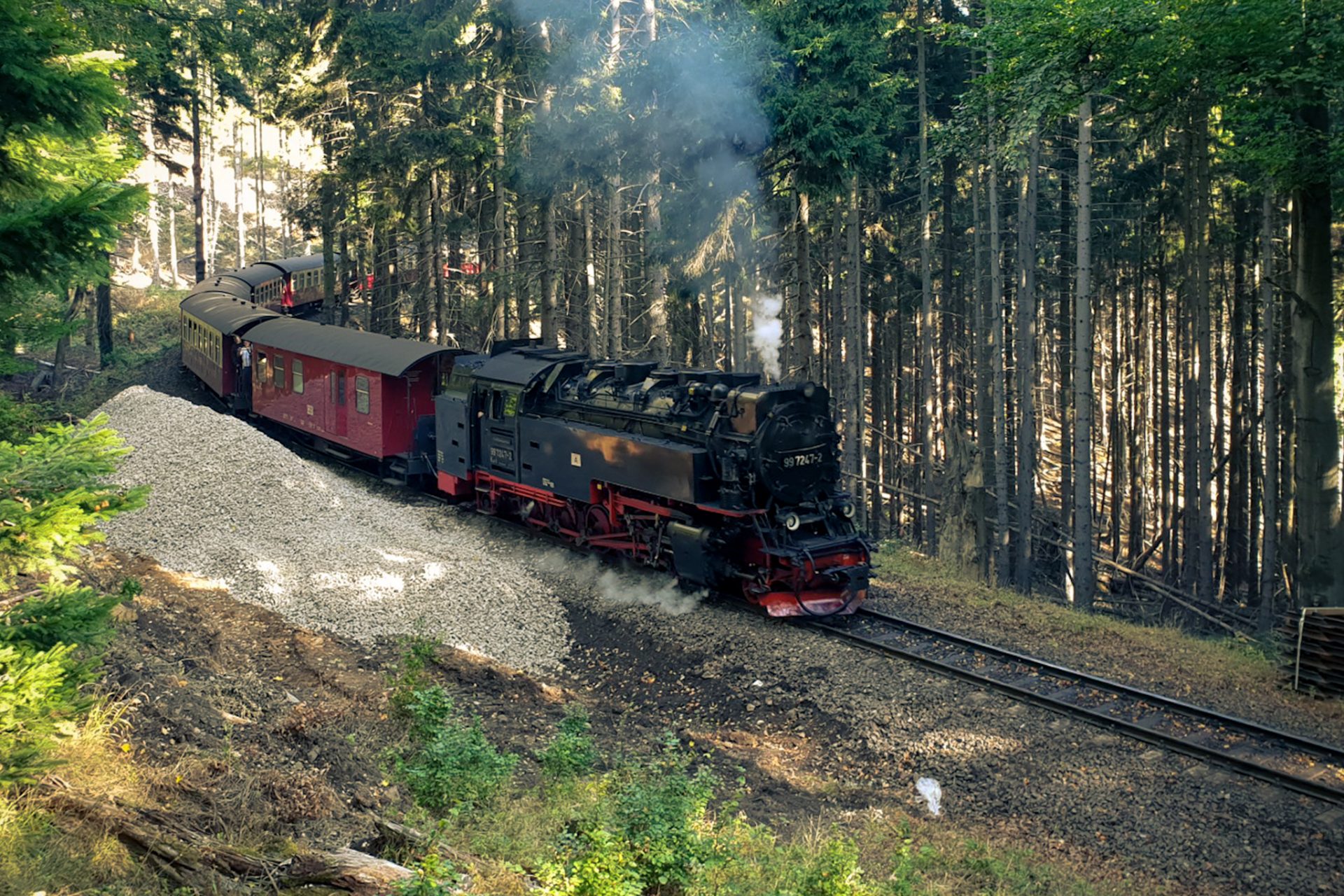 Der erste Abschnitt führt über den sogenannten Bahnparallelweg. Dieser Weg begleitet die Strecke der Harzer Schmalspurbahnen, deren Züge sich durch die Täler des Harzes schlängeln. Immer wieder hört man das entfernte Pfeifen einer Dampflok, bevor sie kurz darauf zwischen den Bäumen auftaucht und gemächlich durch das Tal fährt.