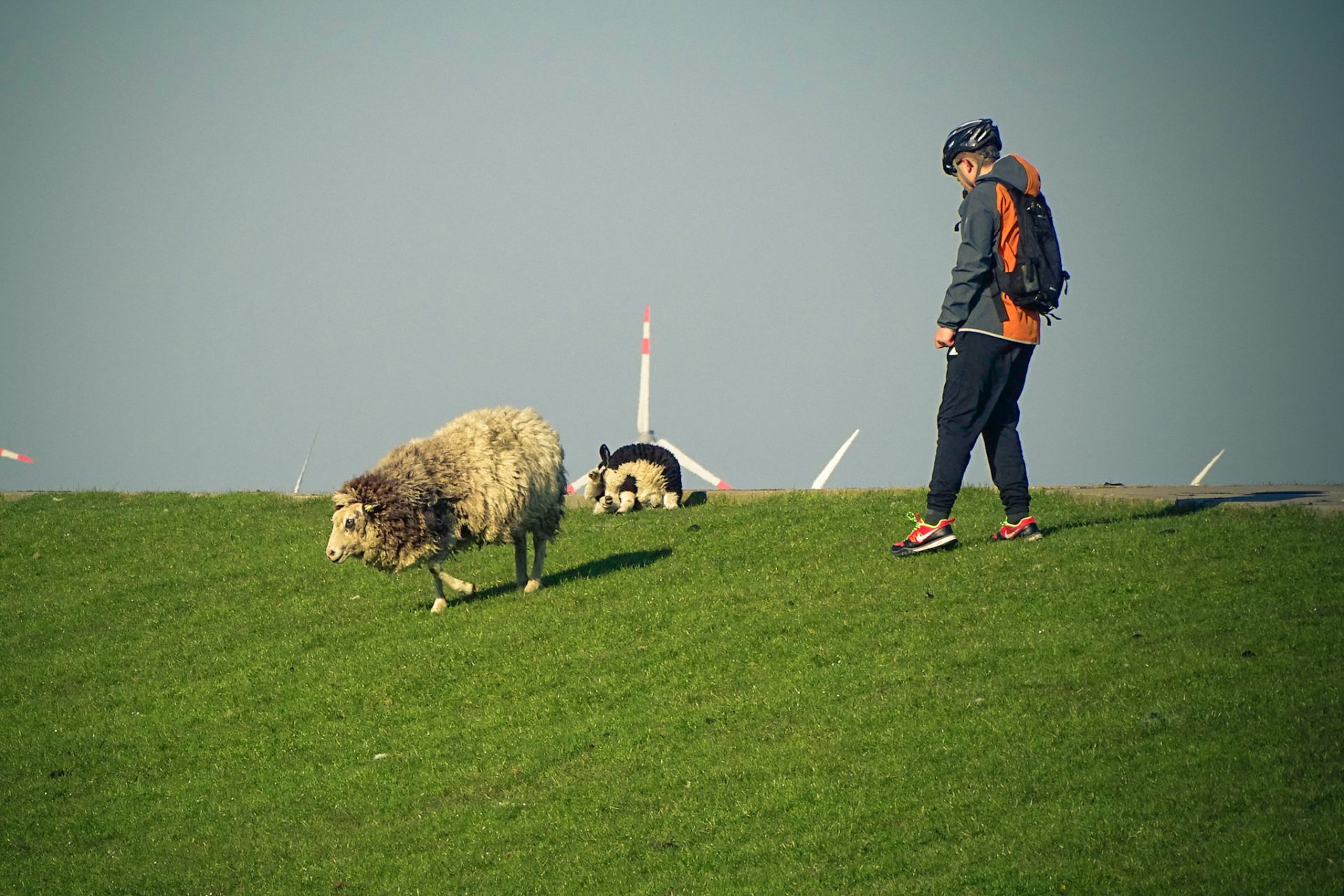 Jetzt fuhren wir lange direkt am Meer entlang. Deiche, Schafe, Wind, Möwen – Nordseeküstenradweg in seiner schönsten Form.