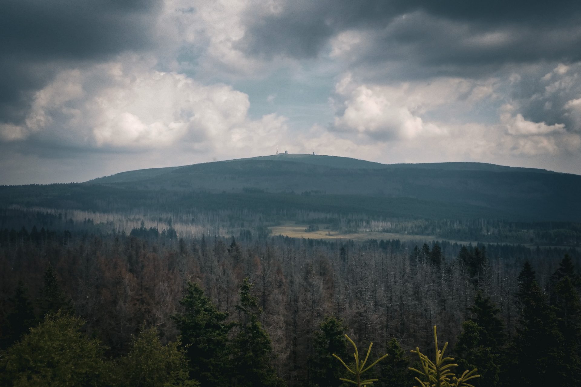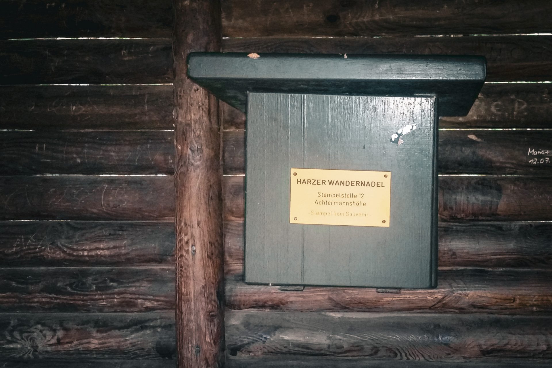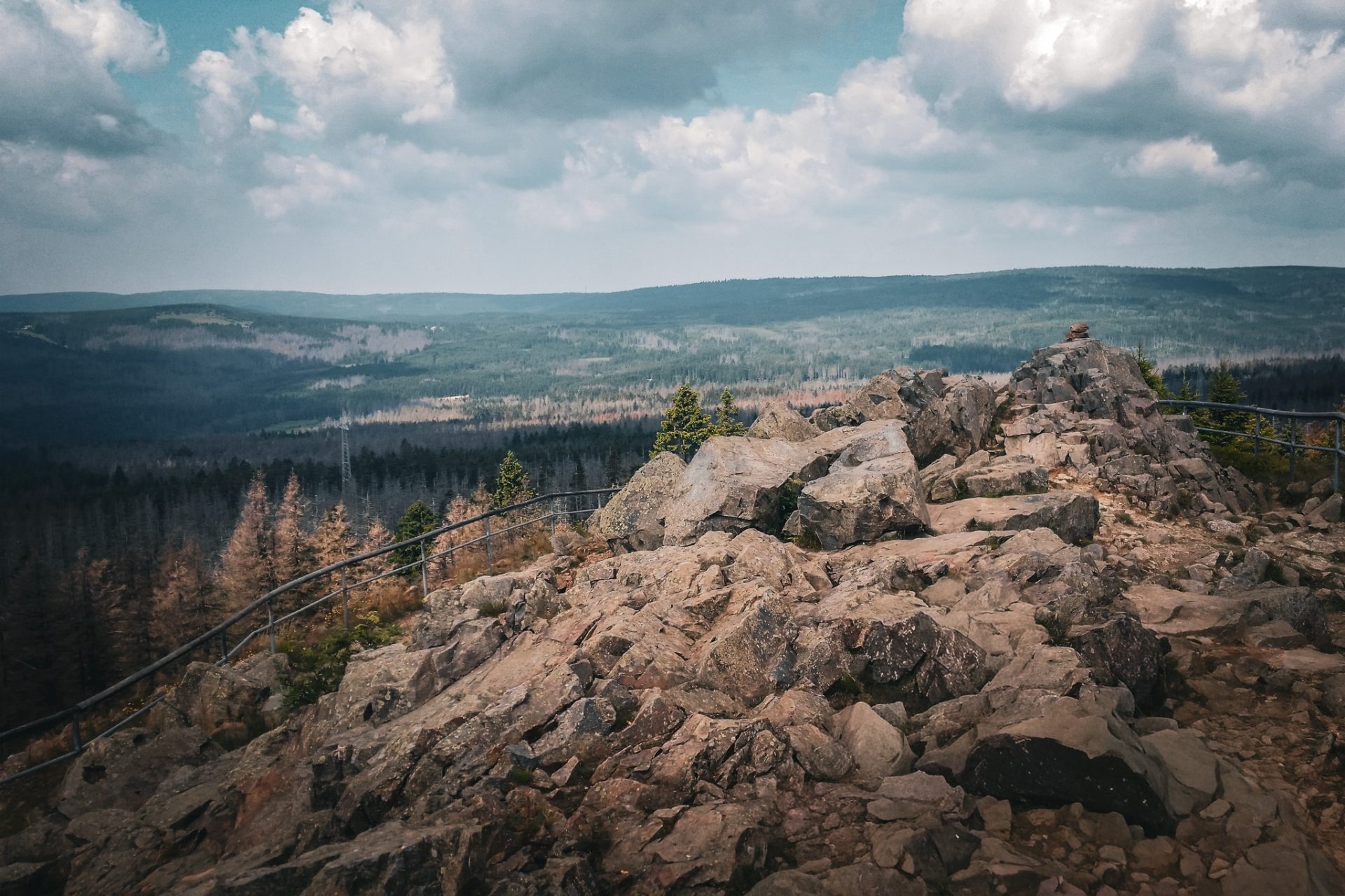 Der Weg führte zunächst über den Millionenweg stetig bergauf durch dichten Harzwald. Nach einiger Zeit erreichten wir schließlich den Gipfel der Achtermannshöhe. Hier befindet sich die Stempelstelle 12 der Harzer Wandernadel. Das Wetter spielte gut mit: leichte Wolken, aber insgesamt klare Sicht. Von oben hatten wir eine schöne Aussicht über die Harzlandschaft – ein perfekter Platz für eine kurze Pause.