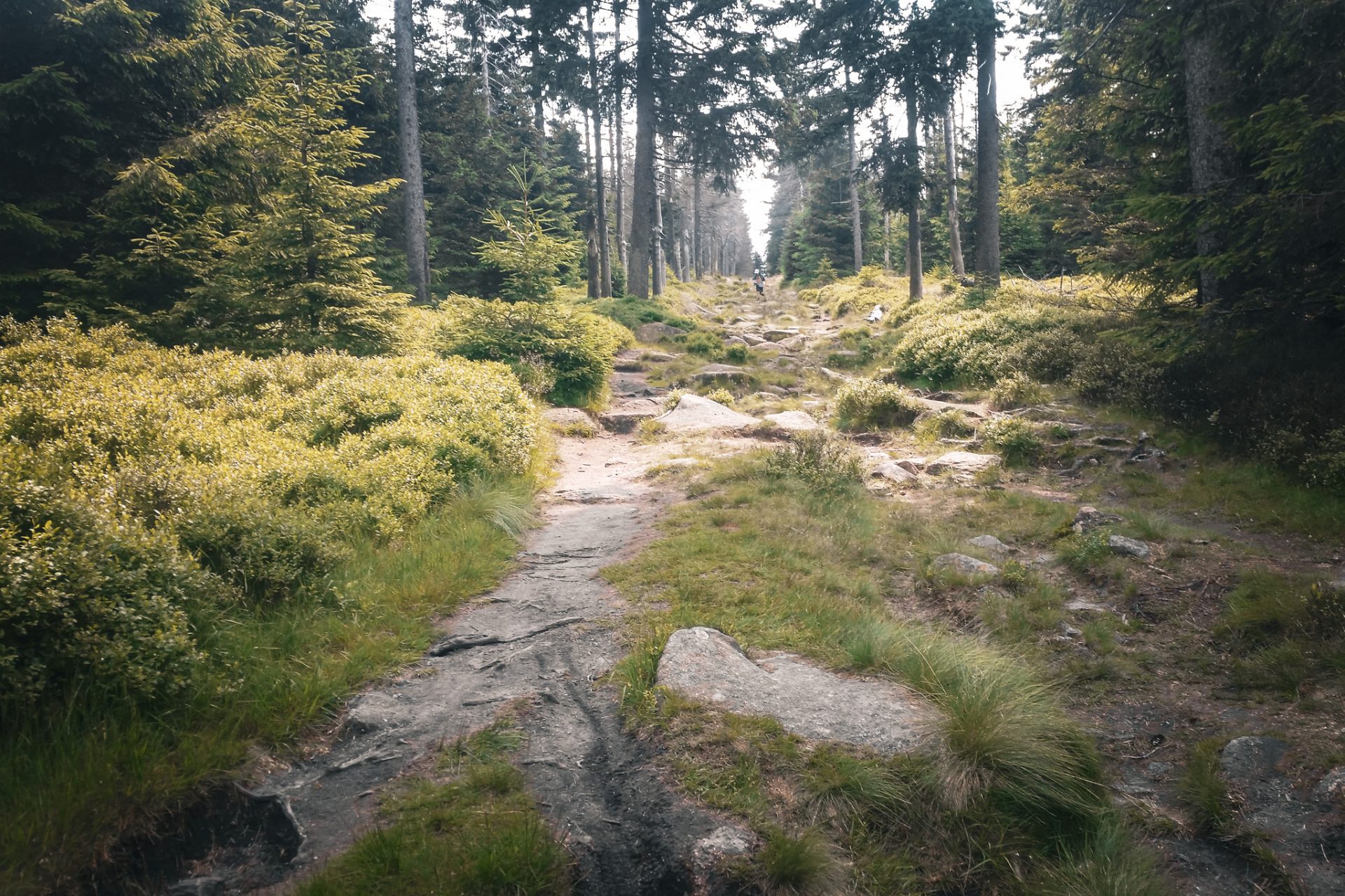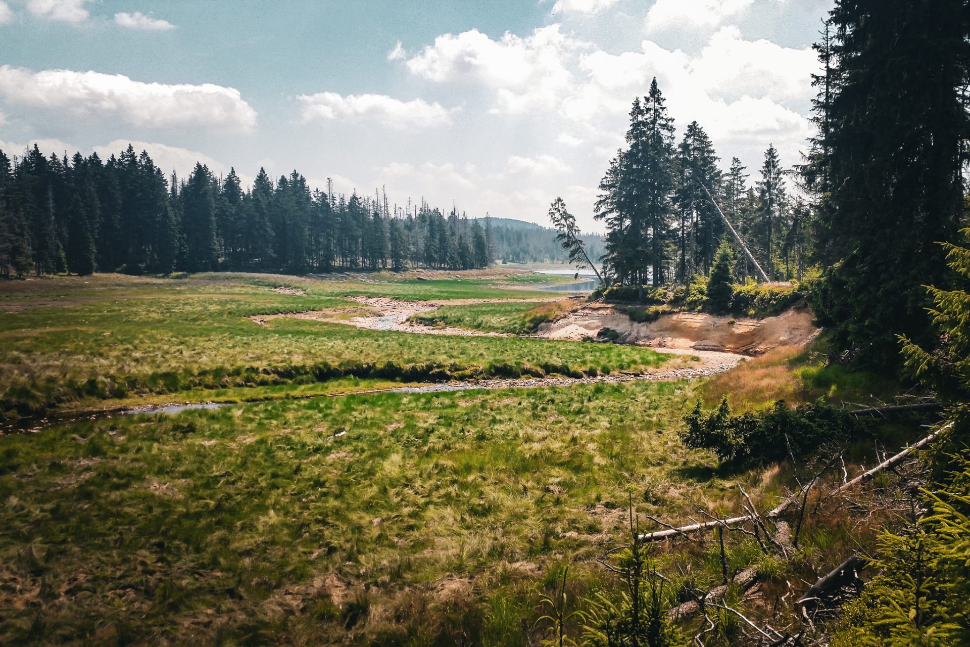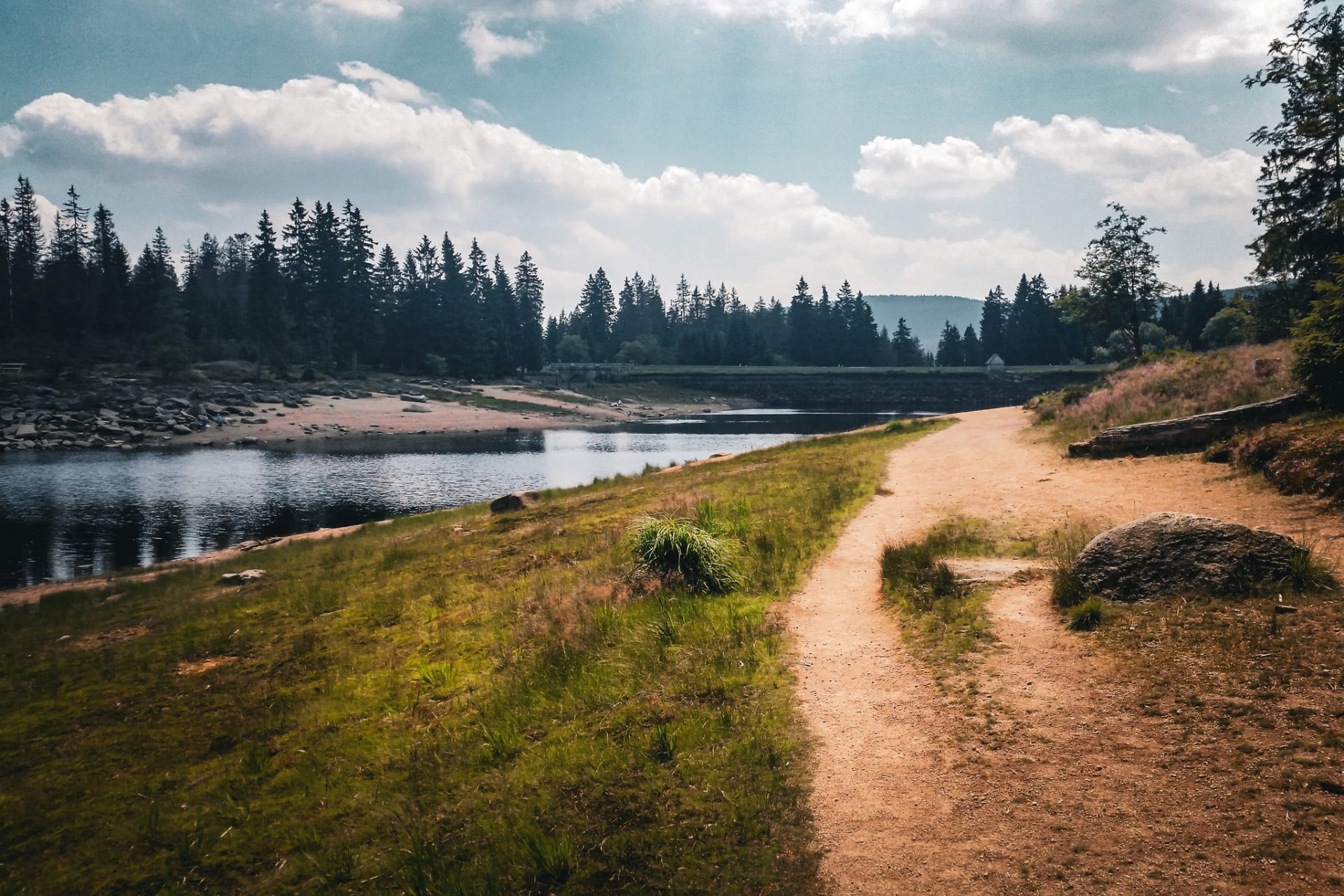 Nach dem Gipfel führte unser Weg über einen recht anspruchsvollen und steilen Pfad bergab in Richtung Oderbrück. Von dort ging es weiter über den Oberen Oderweg zum bekannten Oderteich, einem historischen Stausee des Oberharzer Wasserregals.