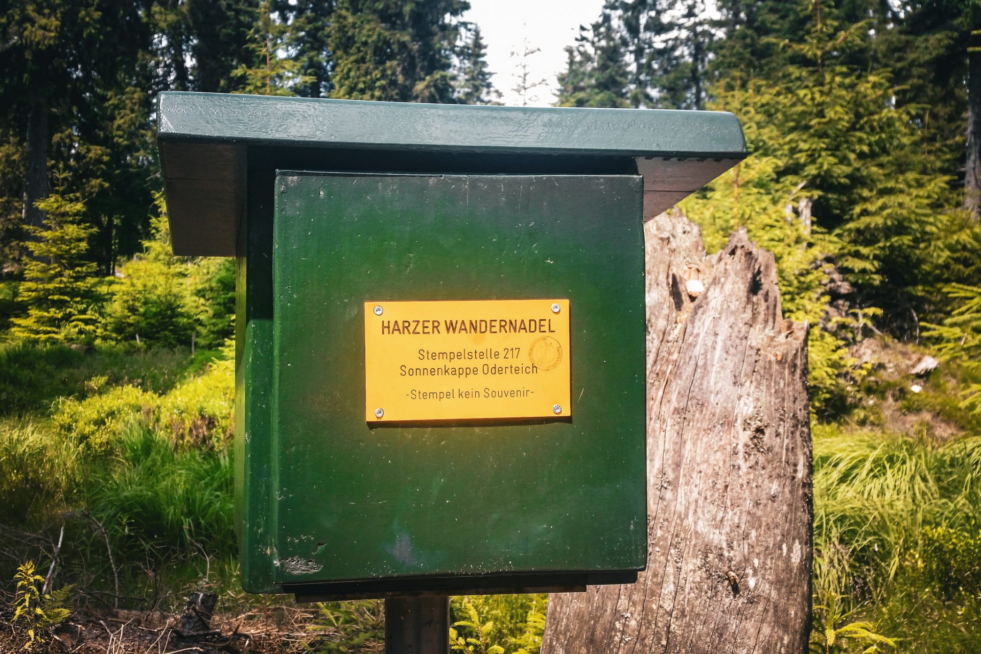 Am Oderteich holten wir uns die nächste Stempelstelle der Harzer Wandernadel, Stempel 217. Danach führte der Weg entspannt am Wasser entlang über den Oderteichweg zurück nach Königskrug.