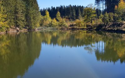 Später wechselte die Landschaft ihr Gesicht. Der Weg führte zu den Auerhahn-Teichen, Teil des jahrhundertealten Oberharzer Wasserregals. Die stillen Wasserflächen lagen ruhig zwischen den dunklen Fichtenwäldern und erinnerten an die lange Bergbaugeschichte dieser Region.