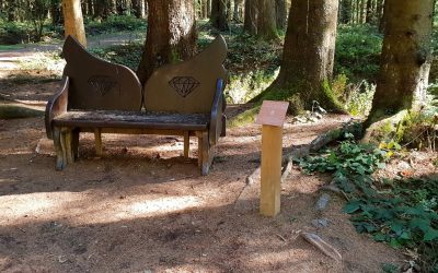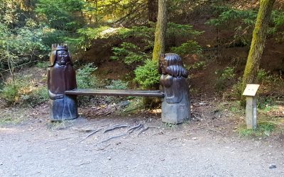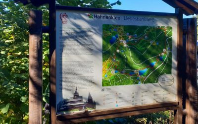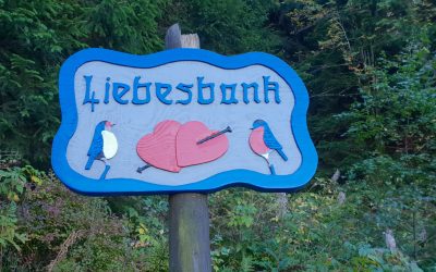 Schon kurz nach dem Start ging es hinein in die stillen Wälder rund um den Bocksberg. Auf dem Liebesbankweg begegnet man immer wieder kunstvoll gestalteten Bänken, die verschiedene Stationen einer Liebesgeschichte darstellen. Jede Bank lädt zum Verweilen ein und erzählt ein kleines Stück dieser Geschichte.