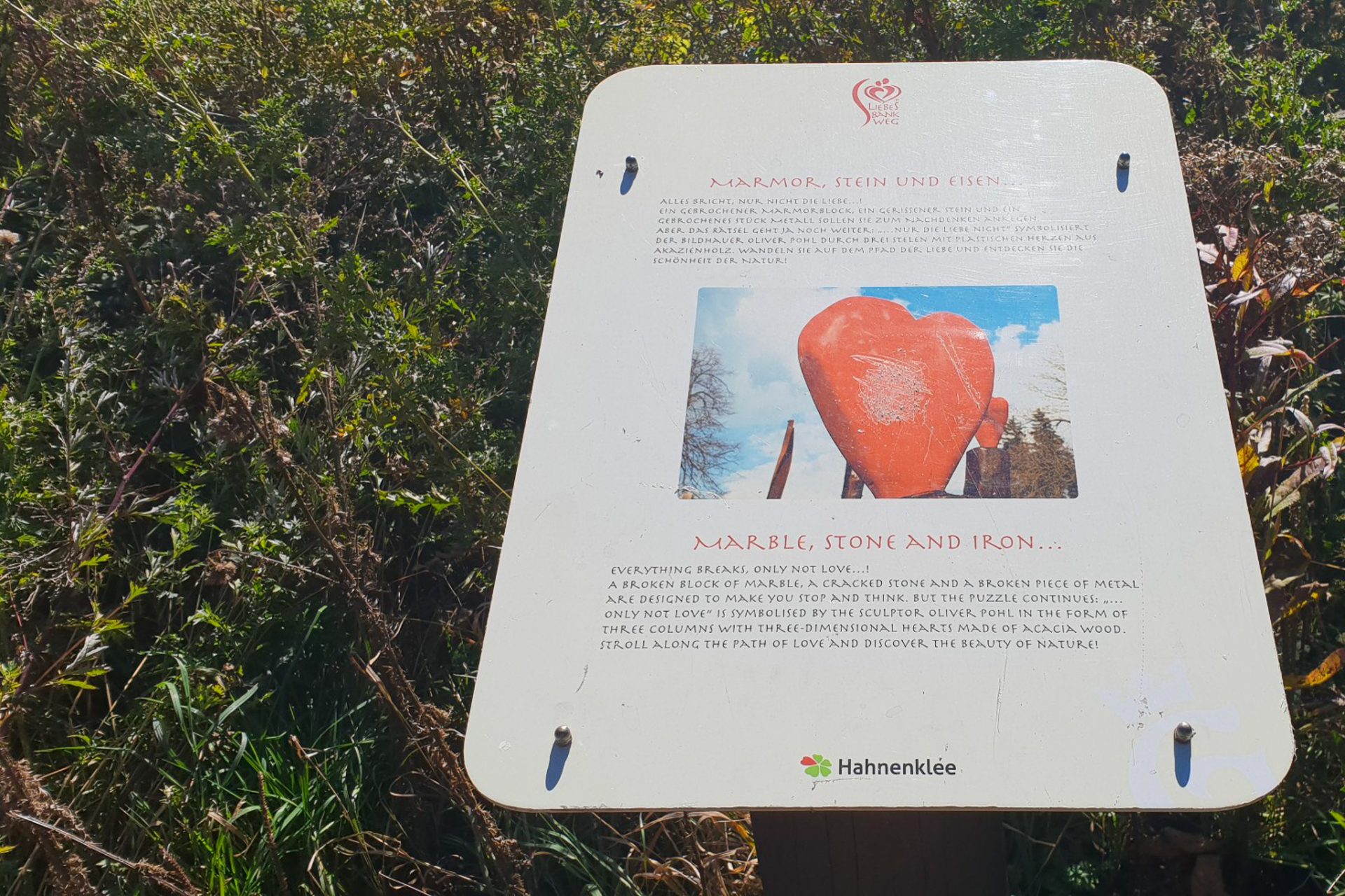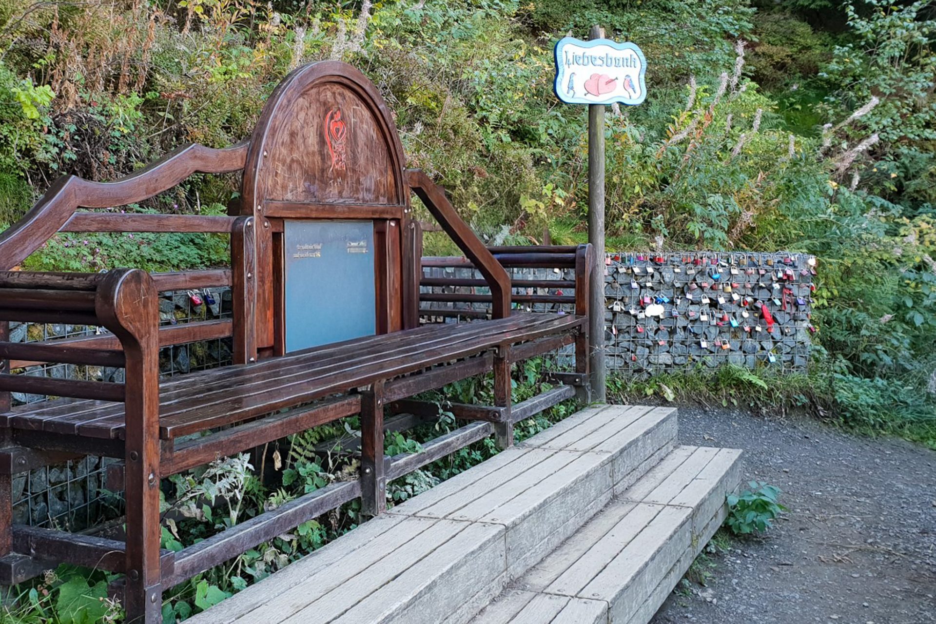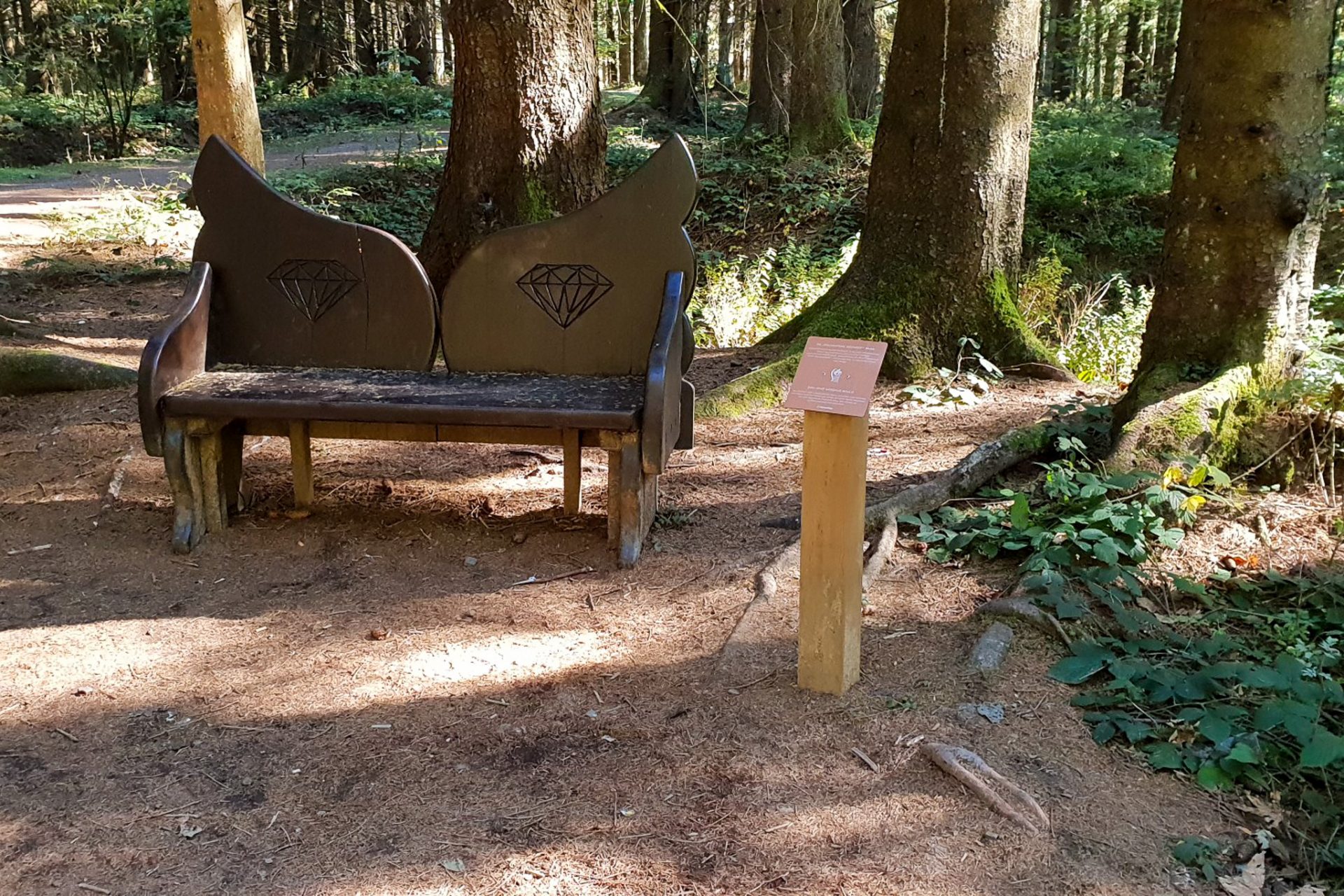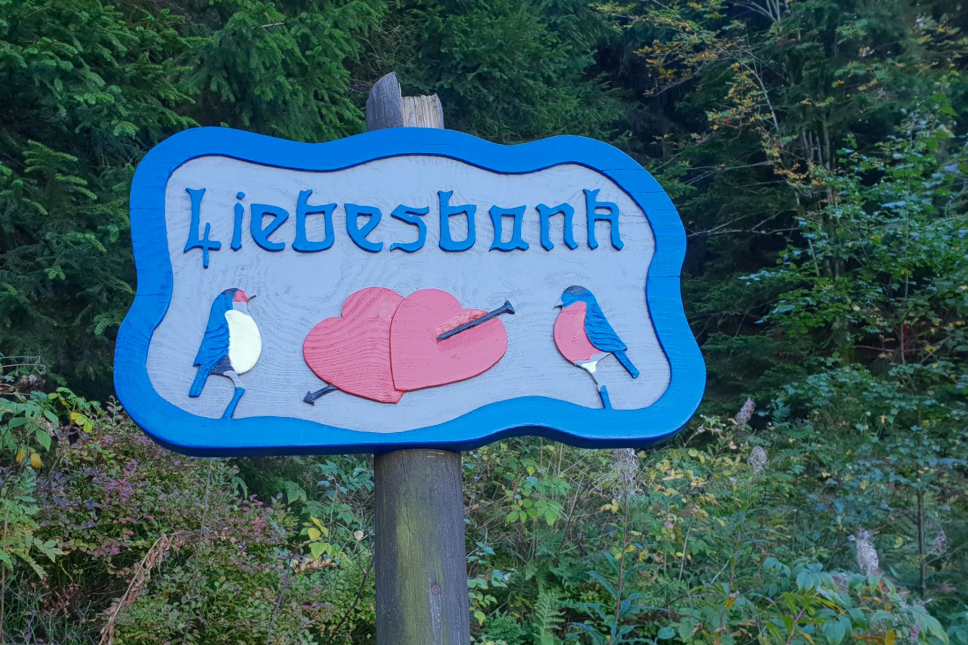 Schon kurz nach dem Start ging es hinein in die stillen Wälder rund um den Bocksberg. Auf dem Liebesbankweg begegnet man immer wieder kunstvoll gestalteten Bänken, die verschiedene Stationen einer Liebesgeschichte darstellen. Jede Bank lädt zum Verweilen ein und erzählt ein kleines Stück dieser Geschichte.