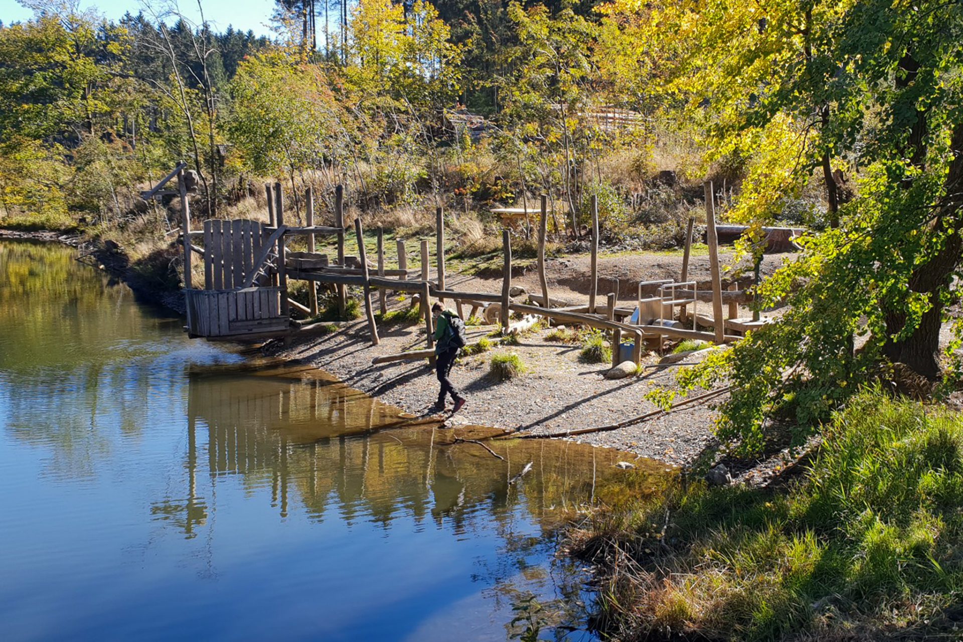 Später wechselte die Landschaft ihr Gesicht. Der Weg führte zu den Auerhahn-Teichen, Teil des jahrhundertealten Oberharzer Wasserregals. Die stillen Wasserflächen lagen ruhig zwischen den dunklen Fichtenwäldern und erinnerten an die lange Bergbaugeschichte dieser Region.