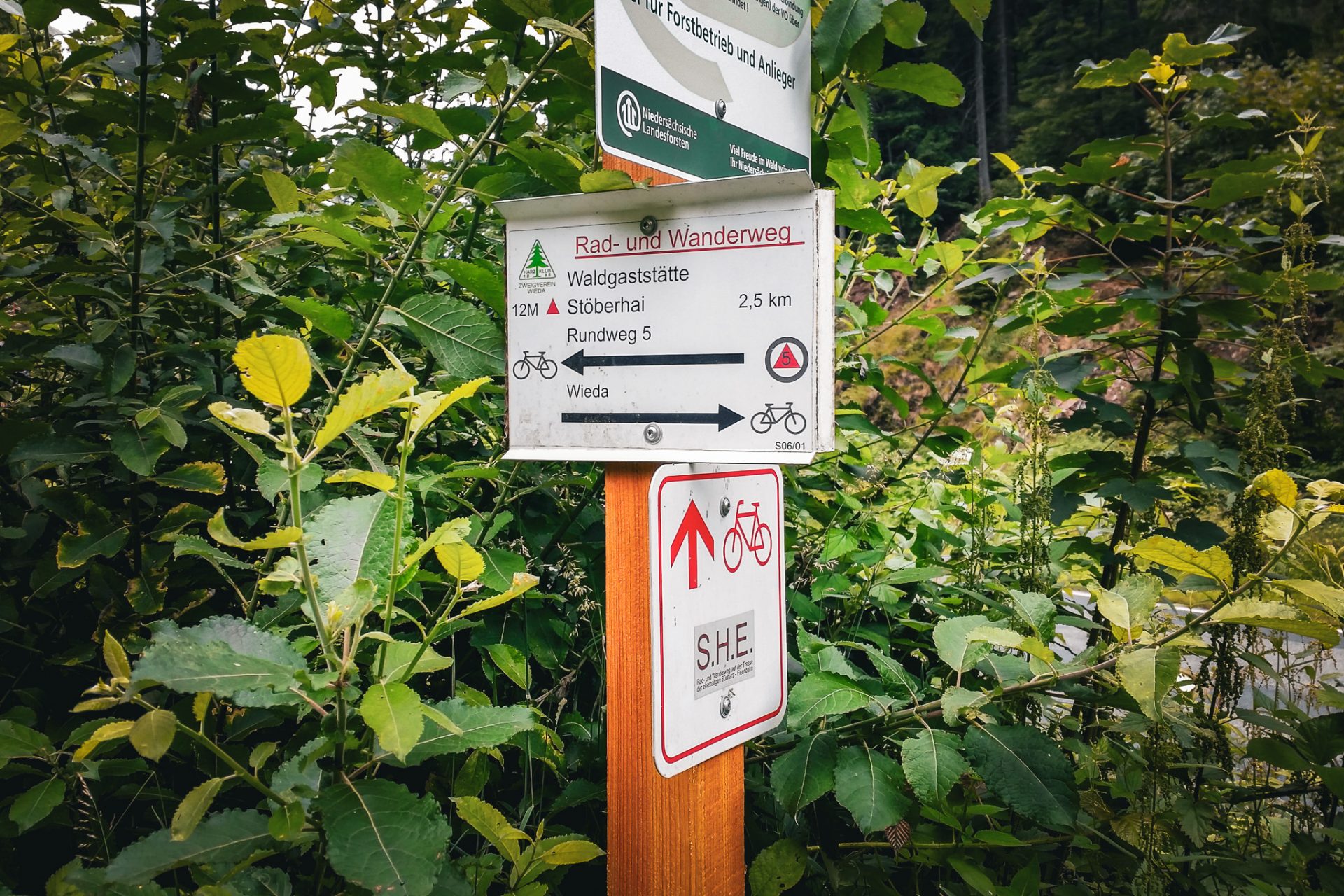Der Startpunkt lag am Ortseingang von Wieda. Von dort aus gingen wir zunächst durch den Ort und folgten dann der Beschilderung in Richtung Stöberhai. Der Weg führt stetig bergauf durch den Wald, ist aber insgesamt gut zu gehen.